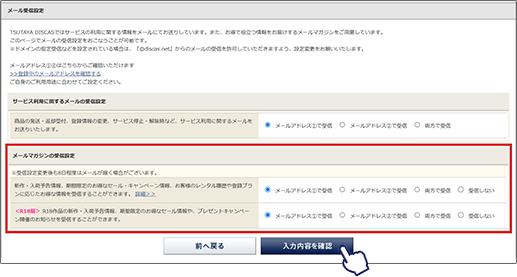 ご自身のご利用用途に合わせてご設定ください。 - ※Yahoo! JAPAN IDとTSUTAYA DISCASのIDを連携された方は「受信する」のみの表示となっておりますので「受信する」のラジオボタンにて選択をお願いいたします。