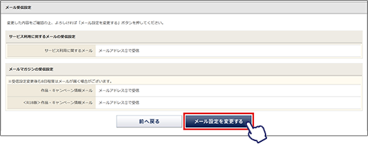 確認画面が表示されますので「メール設定を変更する」をクリックして、登録完了です。登録完了の翌日以降にメールマガジンが配信されるようになります。